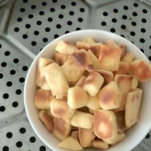 锅底刷油,把小馒头放里煎,煎大约几分钟,小馒头地下金黄色,