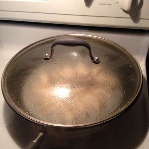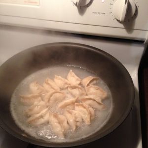倒入一小碗面粉水(水位到饺子一半)
