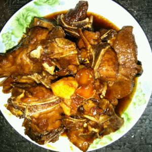水要淹没排骨,盖上盖闷烧,直至汁水粘稠裹住排骨干为止,关火。