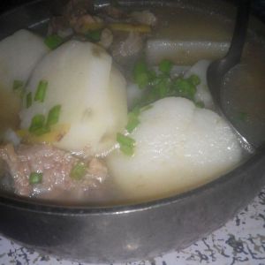 锅内放水下排骨,烧开,捞去肉浮,放盐,鸡精蚝油适量,下山药