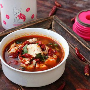 热乎乎的水煮鱼片就做好啦,撒上少许盐,香葱、拌匀就可以开吃啦