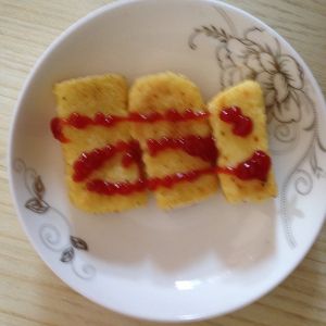 馒头切块放进鸡蛋液里面搅拌均匀!