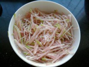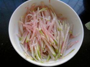 把萝卜洗净,切丝,用雪碧稍微泡一下
