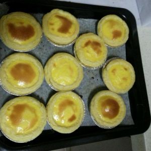 新鲜出炉的蛋挞,味道非常好,老公说跟肯德基的葡式蛋挞一摸一样。