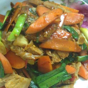 锅里加点底油,爆香姜丝大葱蒜片,把肉片下锅炒香,下胡萝卜,加勺豆瓣酱,炒匀后加少许水盖上闷一下。开锅加蒜叶炒熟就好啦。一般不用加盐调味了,出锅前试试。