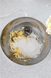 黄油室温软化,加入糖粉用橡皮刮刀稍拌,再用电动打蛋器搅打均匀。