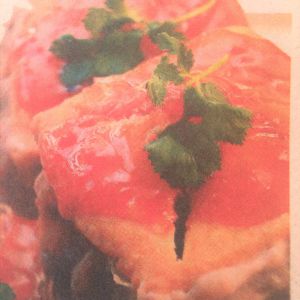 取出蒸好的酿豆腐,淋上甜辣酱即可食用.