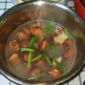把炸好的五花肉放进汤锅,加1盆清水和5片生姜,大火煮沸,加适量盐(加到汤的咸淡刚好合适),然后再加2盆清水,大火煮沸转小火炖,把3盆水炖成1盆水时关火