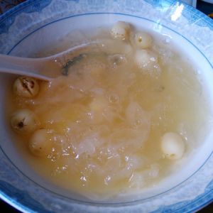 煮好后,放入冰糖,然后等冰糖融化就可以喝了~好喝的莲子银耳汤就好咯~