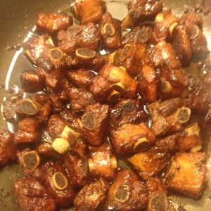 将煮好的排骨沥干水分,放入热油锅里煎至焦黄即可。因为排骨之前已经煮过,肉已经熟了,所以不用煎很久。