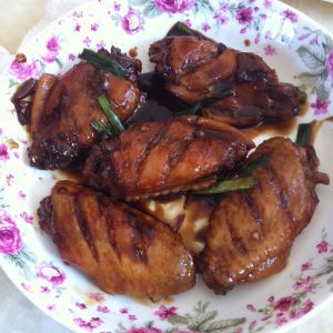 准备炒锅,把高压锅里的鸡翅,连汤一起倒进炒锅,放调料,可乐倒2/3差不多。盖上盖子,开大火煮。当锅里开始有泡泡咕咚咕咚冒的时候。可以开锅盖煮,快收汁了,倒入淀粉水,勾芡一下就行了!