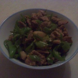 最后放入青椒,芹菜,鸡精炒均匀就ok了,装盘。