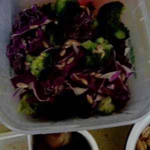 1西兰花洗净切好清水煮熟后捞出即用冷开水过下。2紫甘蓝洗净切丝开水烫半半分钟后沥干水3准备吃前将苹果洗净削皮切小块4前面几样混一块,将柠檬对半切,将柠檬汁挤上去就可以了。