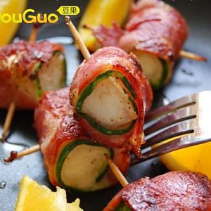 锅里放一点点油,烧热,将培根卷放入,慢慢煎至表面金黄即可,略微有点焦会更香~