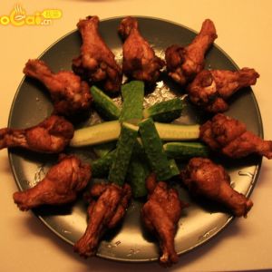 黄瓜摆盘,随你怎么摆,将炸好的翅根盛出就OK了