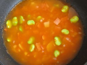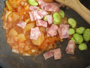 再加入培根以及适量的扁豆翻炒,扁豆可不放