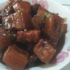 打开高压锅 去掉杂质 将猪五花切块 开火熬制汤汁浓稠 猪肉绵软
