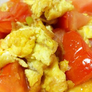 西红柿切块,鸡蛋打散,尽量多打一会,这样等会炒出来的鸡蛋比较松散可口,大葱切丁。