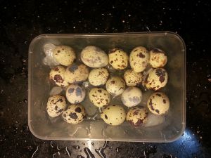 鹌鹑蛋洗干净,放入凉水内加盐一勺开火烧开后煮3-5分钟捞出。