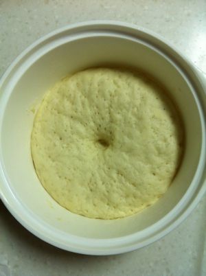 将面粉发酵成2倍大,我是把面团盖好盖子放入温水中发酵,大概2小时左右,期间温水凉了要重新换温水,温水大概30度左右,注意水太热会把酵母烫死。