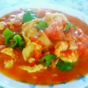 炒锅上油煸香葱姜蒜(干辣椒八角可以根据自己口味添加),下西红柿丁翻炒一分钟加适量开水,加盐胡椒粉调味放入炒好的鸡蛋和青椒翻匀出锅。