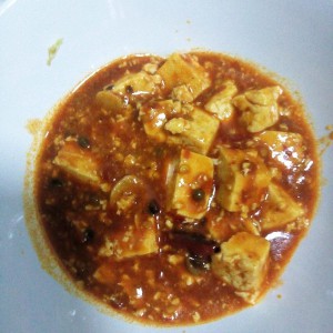 油烧热,下郫县豆瓣酱炒出红油,下葱花炒香,下豆腐小心翻翻,都沾上颜色,放一碗水
