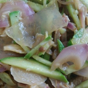 黄瓜,圆葱,肉,切丝备用。