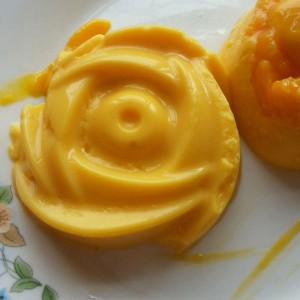 把芒果泥放入微凉的牛奶中搅拌均匀