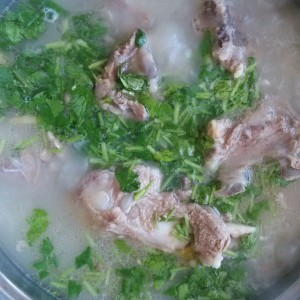 得了啊!放点香菜出锅了啊!开动吃吧。