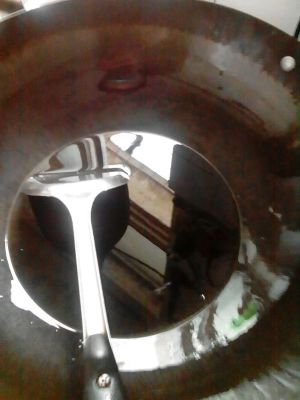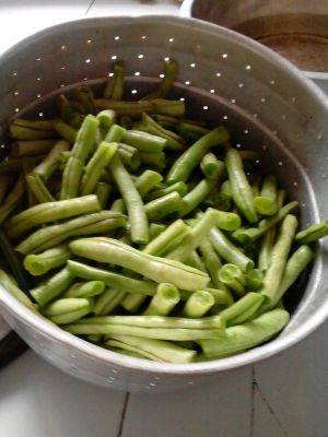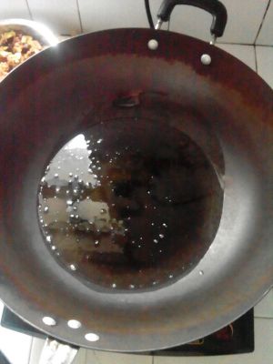 准备环节到此结束,接下来就开始下锅啦。食用油适量(差不多没过四季豆),烧至五分热