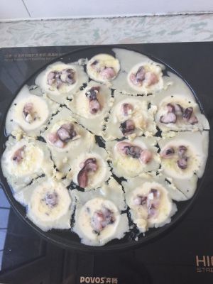 章鱼烧粉+水+鸡蛋搅成面糊