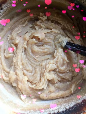 分三次加入油,然后待烧的粘稠之后,加入熟面粉。关火。芸豆陷就好啦≥﹏≤