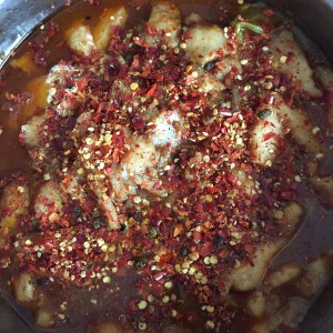 锅中倒入180ml油,油八分熟,冒烟后,迅速洒在放鱼的大碗上,即可食用。
