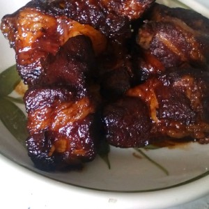 排骨清洗干净后加入料酒和酱油,比例3:1,漫过排骨,再加入几个八角去腥