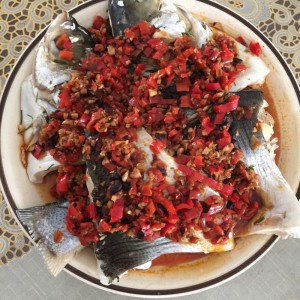 蒸好了,另起锅放入色拉油加热,淋到蒸熟的