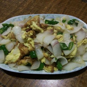加入洋葱翻炒!加入调料!把洋葱炒熟!