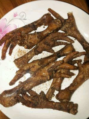 将鸡爪洒上适量调料(各种烧烤粉),烤箱预热后,200度高温烤15分钟。