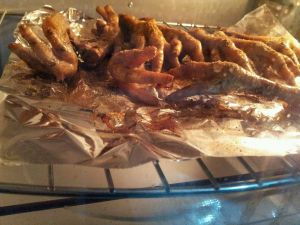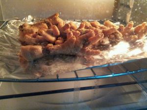 给鸡爪翻了个身,又洒了点粉,200度高温再烤15分钟。。继续等待中。。。