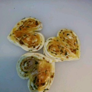 然后擀面皮,擀长,薄,(但也不要太薄了,能发起就可以了)然后抹上牛油,撒上叉烧,葱花,两边卷,一切,弄成心形,蒸板上擦油,放上去,面胚上洒一点水,发大概20分钟左右吧,蒸呢就7至8分钟,好了凉了就可以煎咯