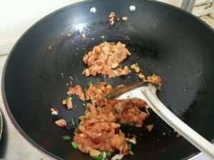 小火热油,倒入葱蒜,倒入蚝油。待有香味后倒入腌好的鸡肉,开大火翻炒