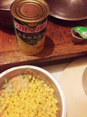 外面买来的这种玉米粒罐头一罐,多少都可以,自己喜欢决定,玉米粒倒出来洗一洗也放进去。