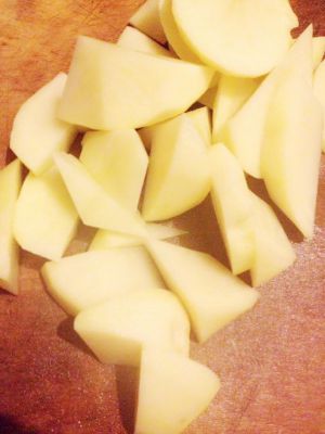 一个中等大小的土豆,切滚刀块,大小都可以。