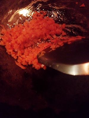 胡萝卜切小丁,用一点橄榄油,把胡萝卜过下油就好。