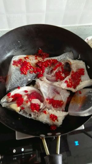 起油锅,葱姜蒜爆香,煸一下鱼,料酒去腥,放入剁椒酱、豆瓣酱,煮30分钟