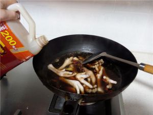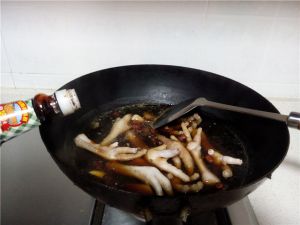 放半锅水,下入姜片,八角,桂皮,干辣椒,鸡爪,十三香,加入生抽。