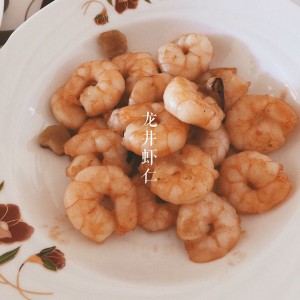 热油 翻炒虾仁 五成熟放入葱姜丝沫 沥入龙井茶 盖盖子大火煮 一分钟后开盖 盐调味盛盘