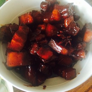 加入清水,或热水,加入八角(也可不加)大火致开锅,转至中火炒到收汁,加盐出锅