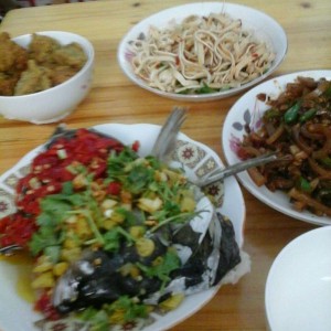 3.等蒸锅水开后将鱼头放进蒸锅内加盖蒸十五至二十分钟(根据鱼头大小控制时间)