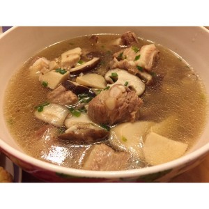 2. 肋排表面炒至有点变色倒入鲜香菇和鸡腿菇继续炒
