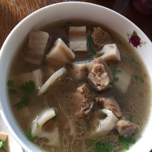 藕切成小块,配料准备好后,排骨入锅焯水,盛出备用。